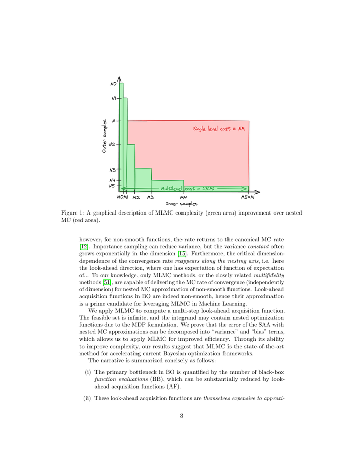 We propose a multilevel Monte Carlo approach for accelerating look-ahead strategies in Bayesian optimization. Look-ahead acquisition functions, which consider multiple future evaluations, can significantly improve optimization performance but are computationally expensive to evaluate. Our method leverages the multilevel Monte Carlo framework to efficiently estimate these acquisition functions by combining cheap low-fidelity and expensive high-fidelity evaluations. This approach enables practical use of sophisticated look-ahead strategies that were previously computationally prohibitive.